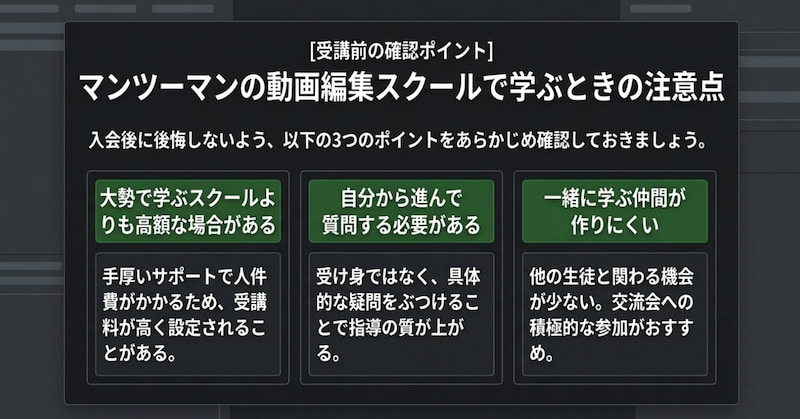 マンツーマンの動画編集スクールで学ぶときの注意点