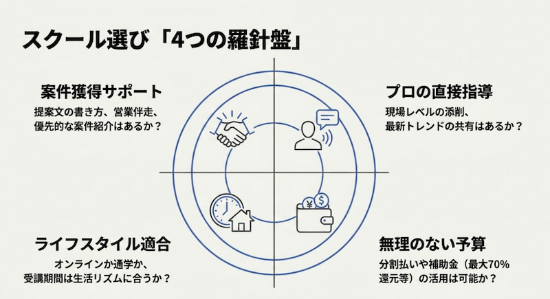 ここでは、失敗しないスクール選びのポイントを4つ紹介します。