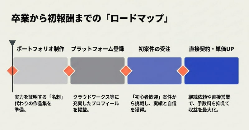 ここでは、卒業してから最初のお金を稼ぐまでの具体的な4つのステップを紹介します。