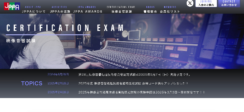 映像・音響業界で働く際に必要な基礎知識を幅広く習得できる点が特徴で、ビデオ編集技術者や録音技術者などが共有すべき技術の理解度を証明します。試験範囲は映像技術、音響技術、著作権、コンピューター技術など多岐にわたり、プリプロダクションからポストプロダクションまでの工程を体系的に学べます。