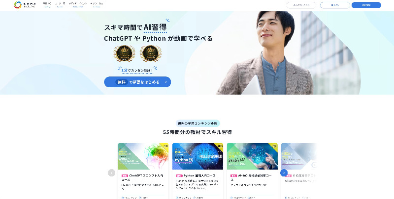堀江貴文氏が監修する生成AI副業AIスクールです。ChatGPTや画像生成AIなど240以上の講座が月額制で受講し放題となっており、非エンジニア向けのカリキュラムで初心者でも安心して学べます。