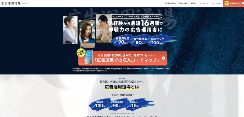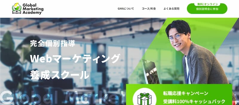 最大の特徴は、採用通過率1%の厳しい審査を通過した現役Webマーケターによる個別指導と、専属キャリアアドバイザーによる徹底した転職サポートです。