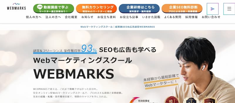 WEBMARKSは、SEOとWeb広告の両方を実務レベルで学べる業界初のWebマーケティングスクールです。