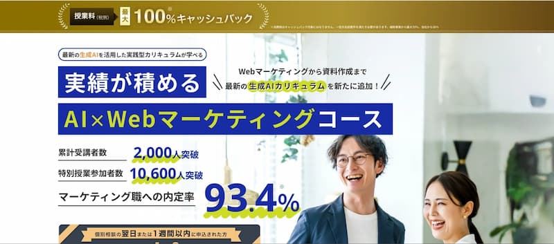 | 学べるスキル | SEO、Web広告運用(Google・Meta)、GA4、生成AI活用、Webライティング |