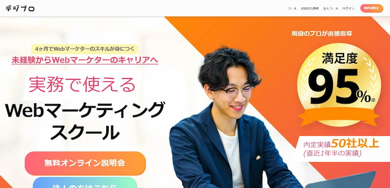 デジプロは、未経験から4ヶ月でWebマーケターを目指せる実践型のWebマーケティングスクールです。