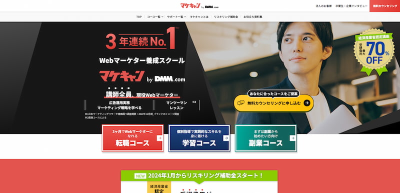 マケキャン by DMM.comは、3年連続No.1を獲得したWebマーケター養成スクールです。